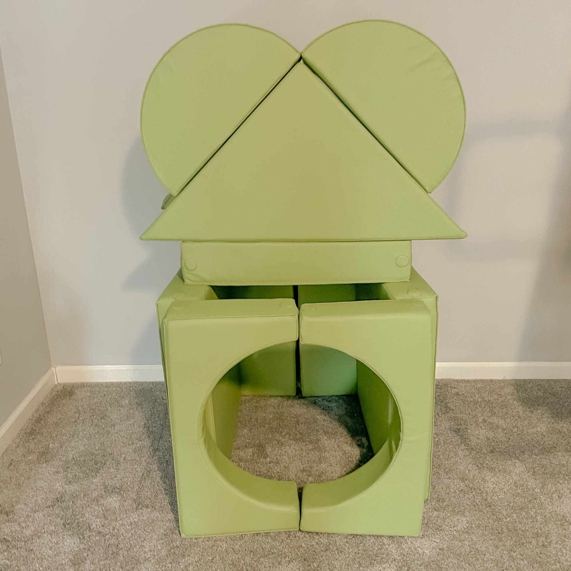 My sons favorite piece of the fort is definitely the half circles. I am not sure why, but he calls them his seats. He loves stepping and sitting on them and has already came up with his own fun ideas for them. Yesterday he wanted to play bakery and he used the half circles as a seat and used nugget triangles with a rectangle from the FORT across the triangles as his table.