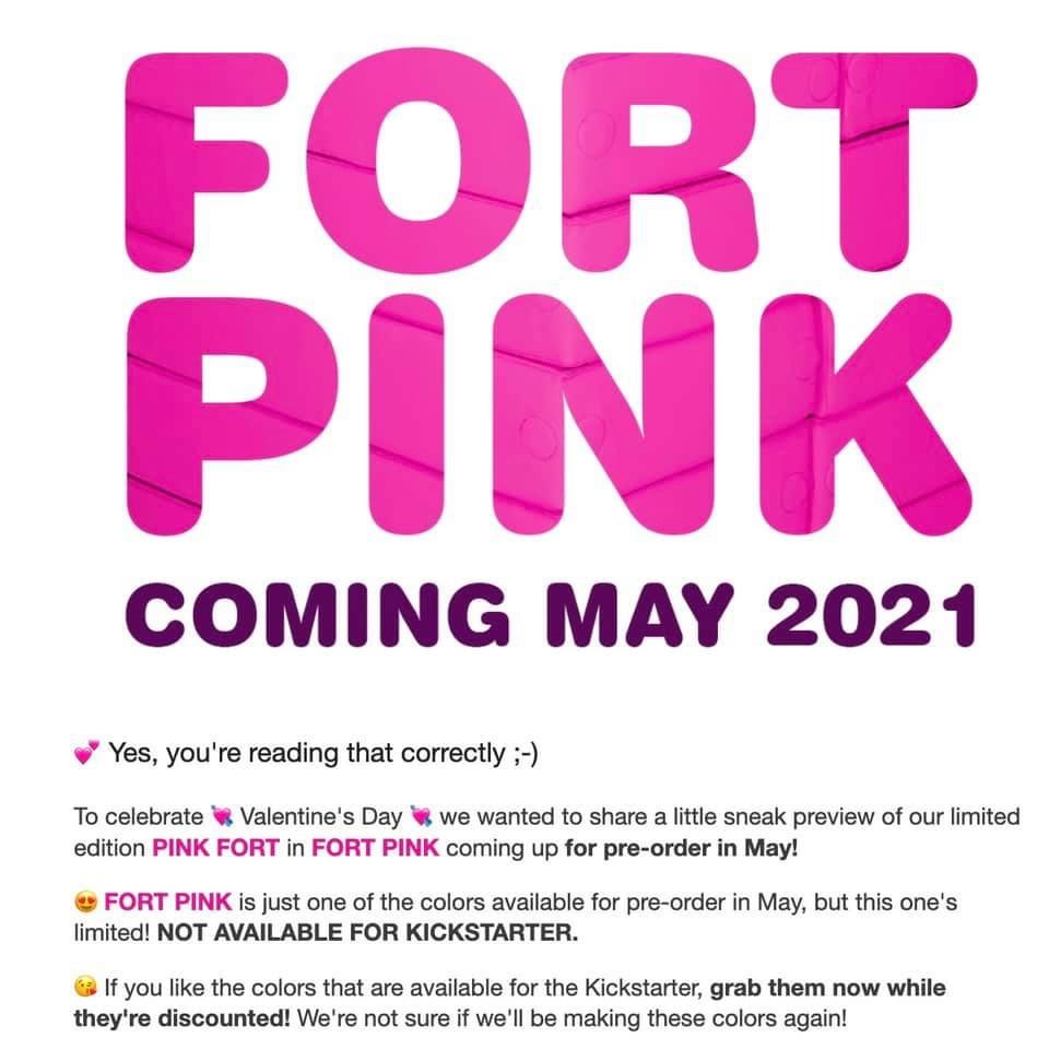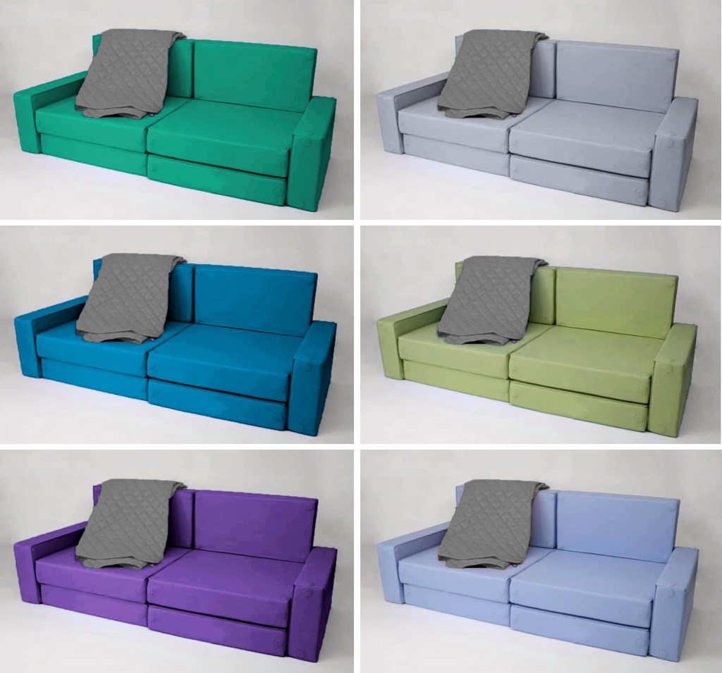 The 6 Colors in the photos to the left are the colors that will be available for FORT kick starter. We do not know if the colors will return or not so if there is one you love get it now. A bright vibrant pink will be available to purchase in May. This is so exciting because customers have been begging for this color from other play couch companies. It is such a beautiful and fun color.
